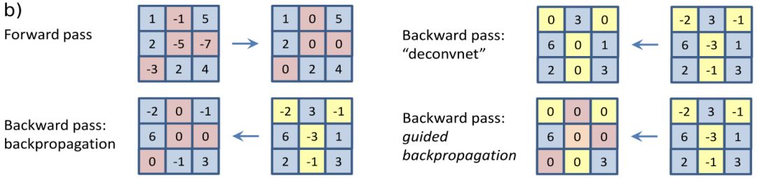 实质上,在引导反向传播(Guided backproagation)中,对目标类的预测值没有影响或有负面影响的神经元被屏蔽并忽略。通过这样做,我们可以防止梯度通过这样的神经元,从而减少噪音。