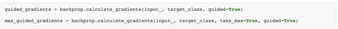 gradients = backprop.calculate_gradients(input_, target_class)max_gradients = backprop.calculate_gradients(input_, target_class, take_max=True)