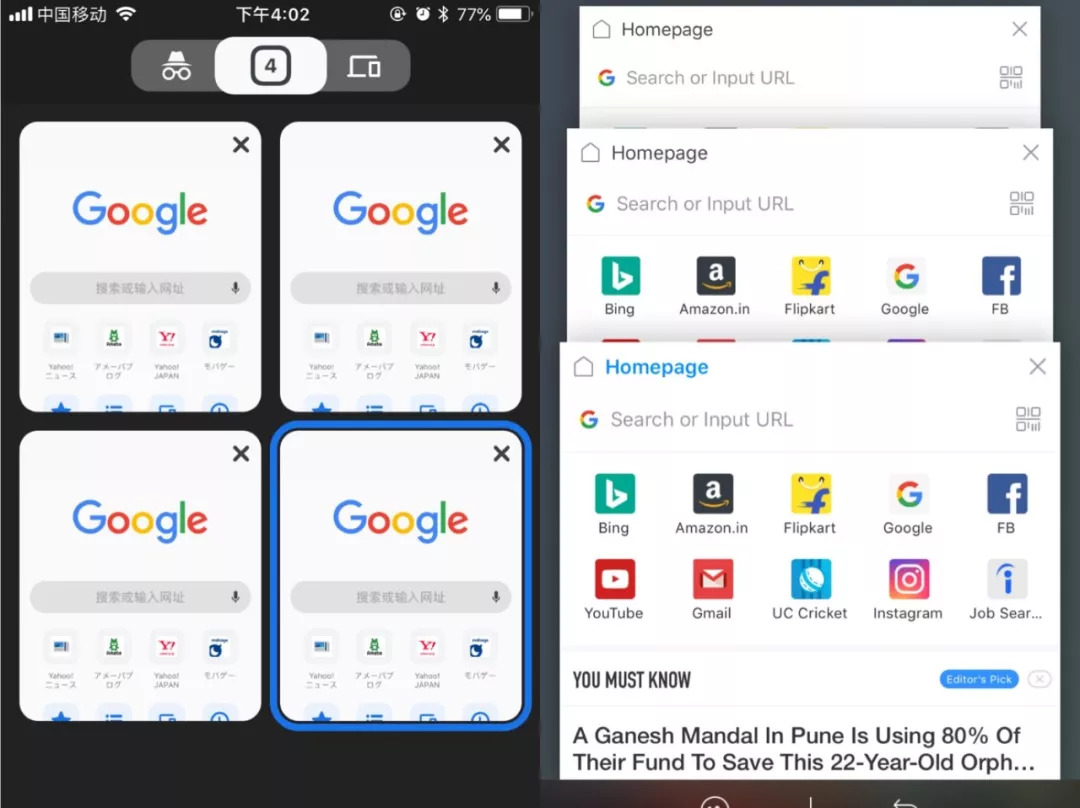 左:Chrome浏览器,右:UC浏览器。