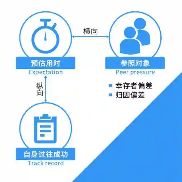 一方面,预估时间时要具体问题具体分析,不能一直沿用过往对自身能力的评估标准;另一方面,选择参照对象时也尽量避免幸存者偏差与归因偏差。