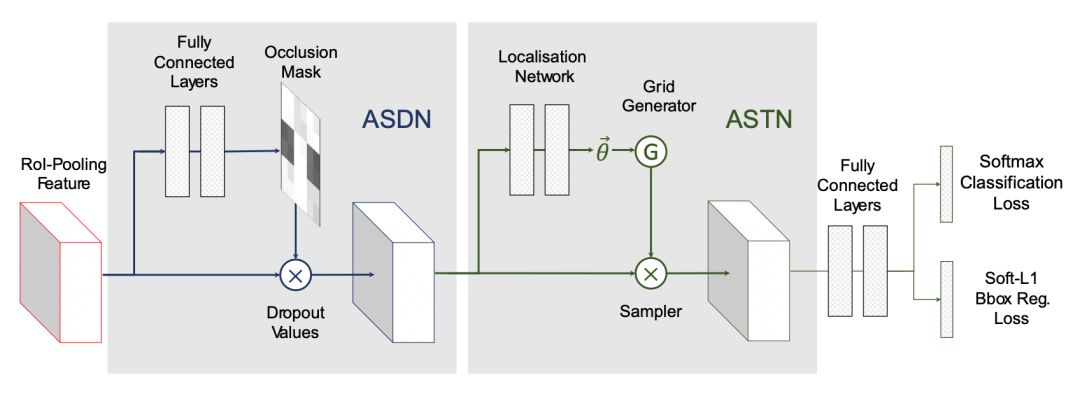 本文设计了两个对抗网络 ASDN 和 ASTN,分别对应于样本的遮挡和样本的变形,并将这两种变形相融合(ASDN 的输出作为 ASTN 的输入),使得检测器在训练的时候可以更加鲁棒。