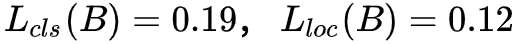 如果按照原生的 OHEM(假定各损失函数权重相同),此时 RoI_A 的总体 loss 大于 RoI_B,也就是说 A 相对于 B 更难分类;而实际上单从分类损失函数(交叉熵),RoI_A 和 RoI_B 的实际类别概率分别是 61.6% 和 64.5%,在类别概率上两者只相差 0.031,可以认为 A 和 B 具有相同的性能。