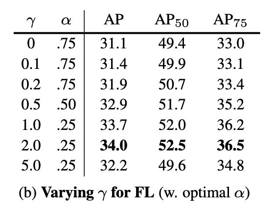用于控制难易样本的权重,目的是通过减少易分样本的权重,从而使得模型在训练的时候更加专注难分样本的学习。文中通过批量实验统计得到当