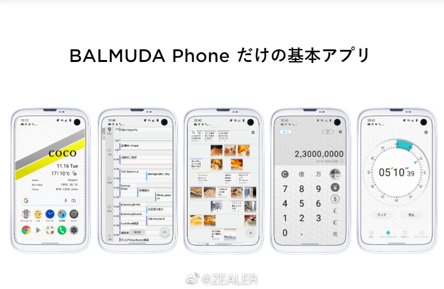 配置方面,Balmuda Phone 搭载高通骁龙 765 主控,前置摄像头 800 万像素,后置摄像头 4800 万像素。内置 2500mAh 机身电池,提供 6GB +128GB 存储组合,支持 NFC 与 IP44 级防尘防水,搭载 Android 11 系统。这款 Balmuda Phone 一大卖点在于一些系统软件进行了定制,不是很数字化,更具有拟物风格。