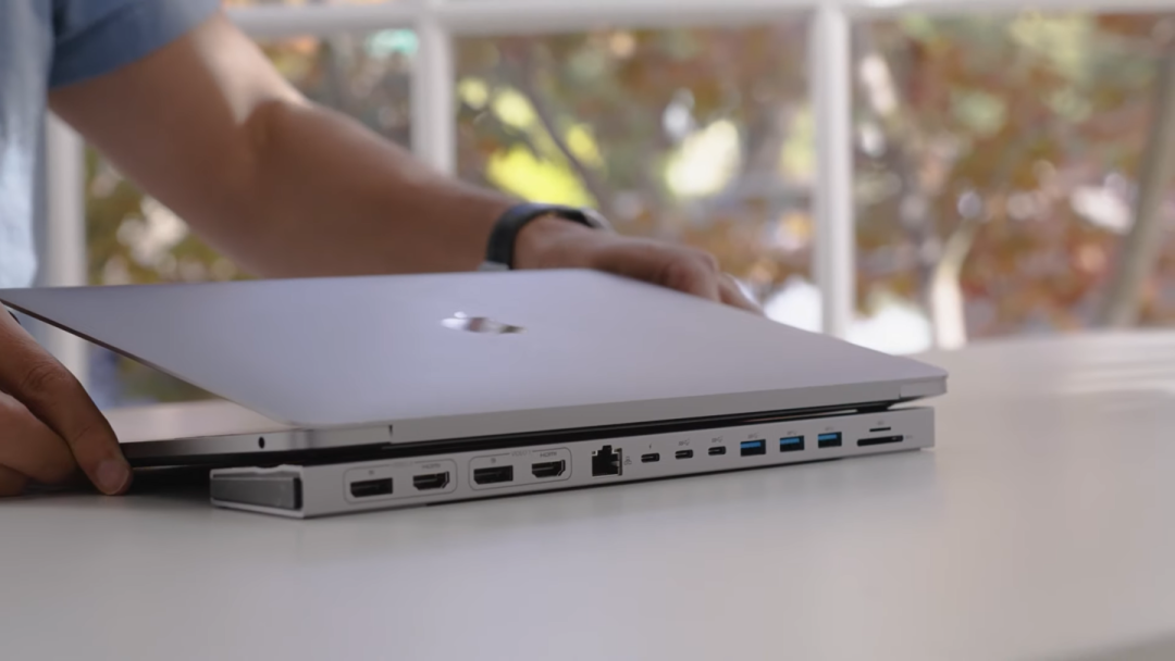 据 MacRumors 今日报道,配件商 Hyper 推出了一款 15 接口扩展坞 HyperDrive,它支持 2016 款至 2021 款所有搭载 USB-C 接口的苹果 MacBook Pro 以及 Windows PC 和 Chromebook 设备。采用了铝制材料,且尺寸设计正好可以让 MacBook Pro 底部抬起放在下方,充当尾部垫高底座,兼顾人体工学优点、还能够改善笔记本电脑的散热。