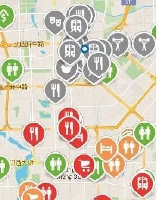 提供区内搜索、查找和标记服务,显示轮椅容易通过的地点,结合轮椅通行地点和相关通行情况来进行导航。这些信息在地图中通过四种颜色区分: