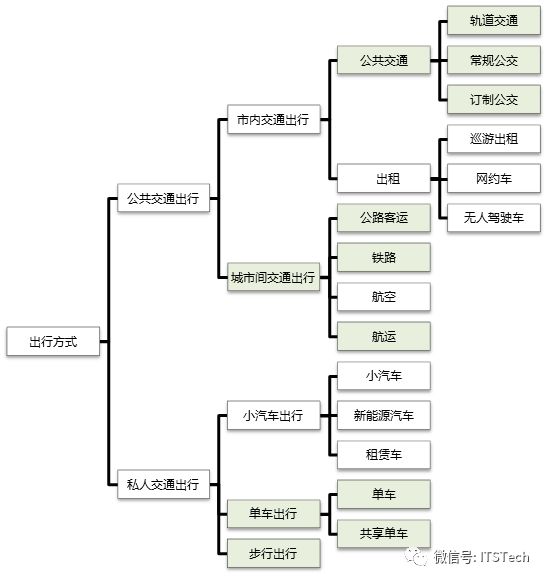 出行是人的基本生活需求。人在出行时根据时间、费用、舒适程度等不同要求选择不同的出行工具和线路。从提高交通运行效率的角度,人的出行方式可以分为公共交通和私人交通两种方式。公共交通按出行范围的大小又可分为市内交通出行和城市间交通出行。