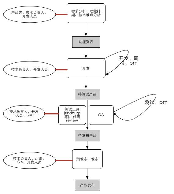 更为具体的一个研发流程则如下图所示,标注了每一个环节的参与角色。