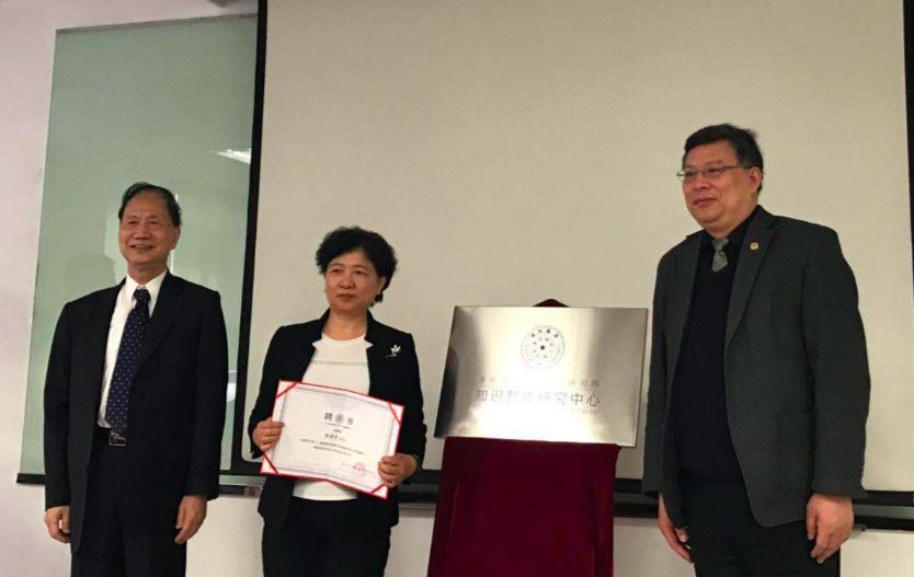 董振东先生被聘任为知识中心学术顾问(由董强先生[中]代领)