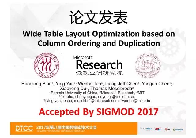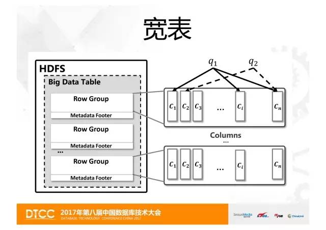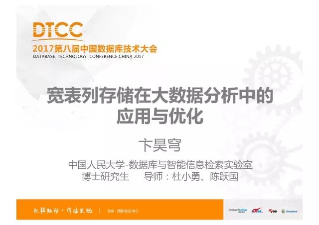 目前在很多企业的数据分析任务中,常见几百上千列的宽表数据。这些宽表通常数据量巨大、存储在HDFS等分布式文件系统中。HDFS上宽表存储优化重要且具有挑战。宽表在数据分析中的可以避免一些频繁的连接操作,在用户画像、数据挖掘负载中,宽表也是一种高效的数据存取方式。对于宽表上的分析型负载,列存储可以有效减少不必要的I/O、提高数据压缩效果。HDFS上也已经有RC File、ORC、Parquet等成熟的列存储格式,但这些存储格式的设计只考虑了传统的数据分析负载,并没有针对宽表做深入的研究和优化。本工作介绍了HDFS上宽表列存储的特征和优化方法。该工作已在微软Bing日志分析产品中应用,并发表在SIGMOD 17上。
