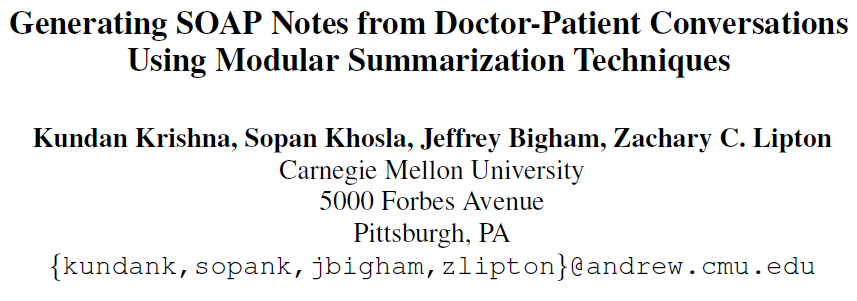 [3] ACL 2021:Generating SOAP Notes from Doctor-Patient Conversations Using Modular Summarization Techniques