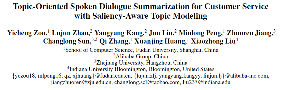 [2] AAAI 2021:Topic-Oriented Spoken Dialogue Summarization for Customer Service with Saliency-Aware Topic Modeling