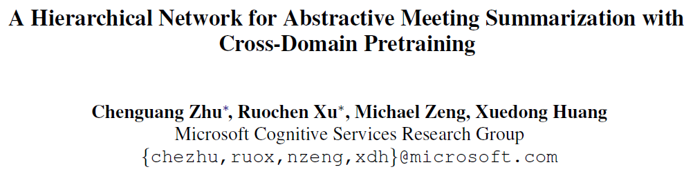 [1] EMNLP 2020: A Hierarchical Network for Abstractive Meeting Summarization with Cross-Domain Pretraining