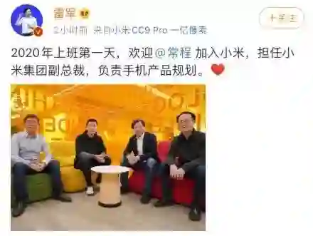 2日上午,雷军微博官宣,欢迎原联想集团副总裁常程,入职小米,担任小米集团副总裁。