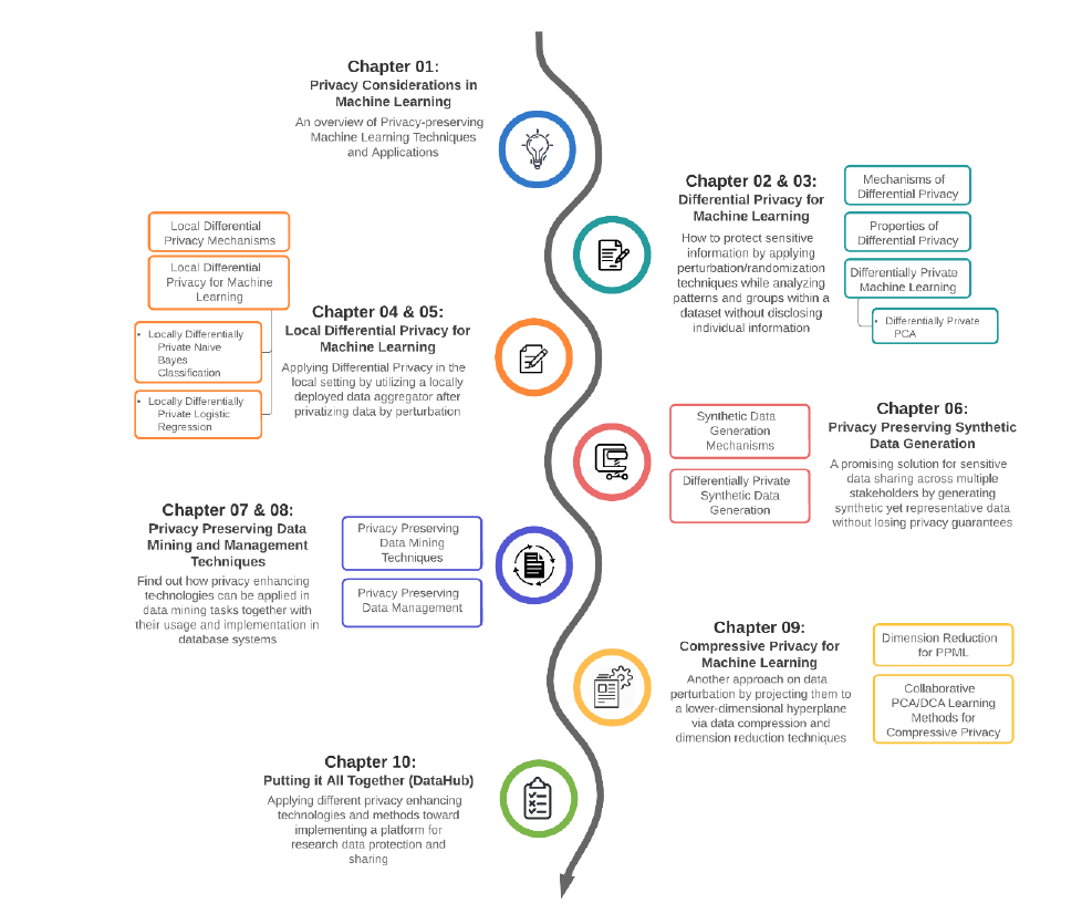 第6章将研究如何在PPML范式中使用合成数据生成技术。正如我们已经讨论过的,合成数据生成在机器学习社区中越来越受欢迎,特别是作为机器学习模型的训练和测试的替身。所以,如果你有兴趣找到方法和方法来生成合成数据,以保护机器学习的隐私,这是你的章节。同时,在第7章和第8章中,我们将了解如何在数据挖掘任务中应用隐私增强技术,以及它们在数据库系统中的使用和实现。我们都知道,最终,所有东西都必须存储在数据库中的某个地方,无论数据模型是关系型、NoSQL还是NewSQL。如果这些数据库或数据挖掘应用程序在访问或发布数据时容易受到隐私攻击,该怎么办?这两章将调研不同的技术、方法和完善的行业实践,以减轻这种隐私泄露。