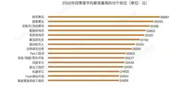 BOSS直聘2020年四季度人才吸引力报告显示,推荐算法已经连续2年成为平均薪资最高的岗位,平均年薪高达近40W。