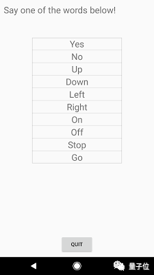 打开“TF Speech”,可以看到一组10个词的列表,你对着麦克风说哪个词,哪个词就会亮起来。