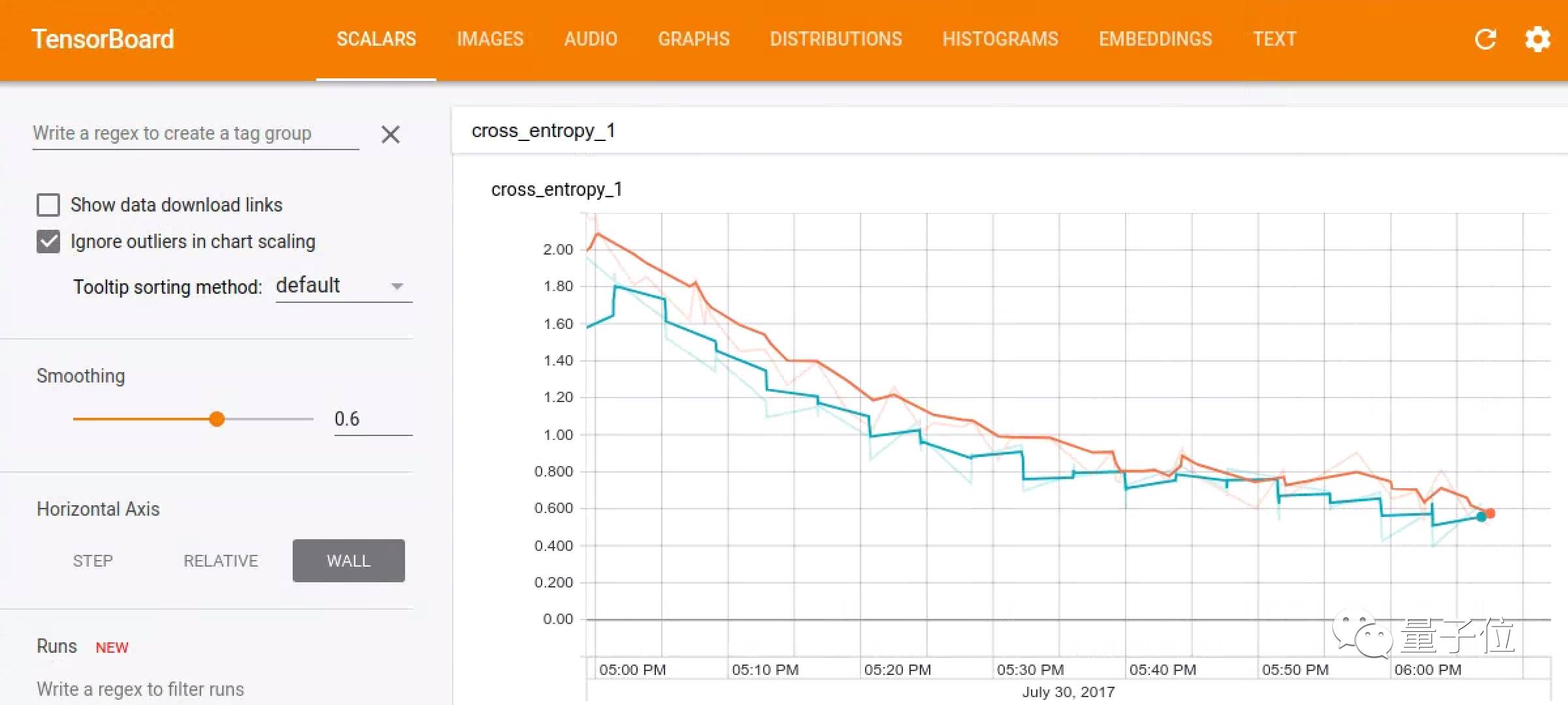 然后在浏览器中打开http://localhost:6006,就能看到模型训练情况的图表:
