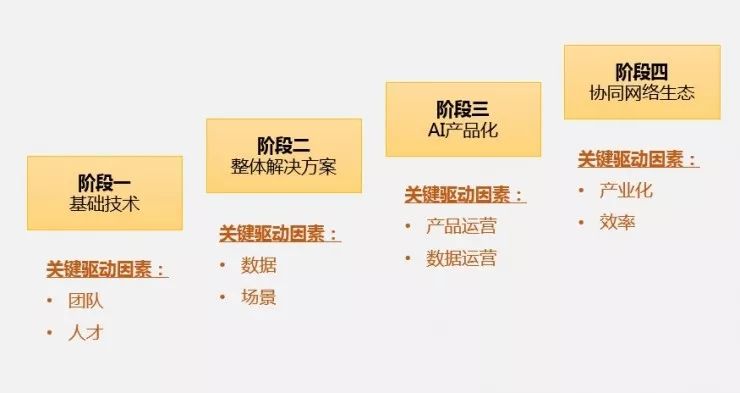 在AI应用场景尚未成熟和得到市场验证之际,任何AI企业都倾向于从事基础技术的积累,这点无论对于国内外AI初创企业而言都是一样的,最典型的案例是DeepMind。目前大多数国内AI初创公司均属于或者准备脱离这一阶段,基础技术积累阶段的特征是对于人才的争夺以及采取类似于实验室形式的AI技术与算法研发,而其核心驱动因素是团队与人才。在此阶段,AI企业们大多热衷于在各个顶级会议发paper以及参与到各项国际AI竞赛的刷榜之中,由于技术的商业化程度不足,往往只能通过项目制形式为客户提供AI技术服务,即简单粗暴地卖模型、卖算法,如人脸识别技术服务、基础语言识别服务、金融领域的知识图谱工程等。但以人和算法作为企业核心能力是不可持续的,尤其目前深度学习领域算法红利期变得越来越短,而人才缺口也在逐渐被填补。