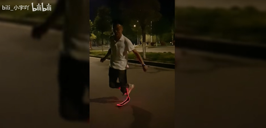 这名up的ID是 @bili_小宇吖,最近他发表了一个视频,标题叫「义肢灯光秀」。