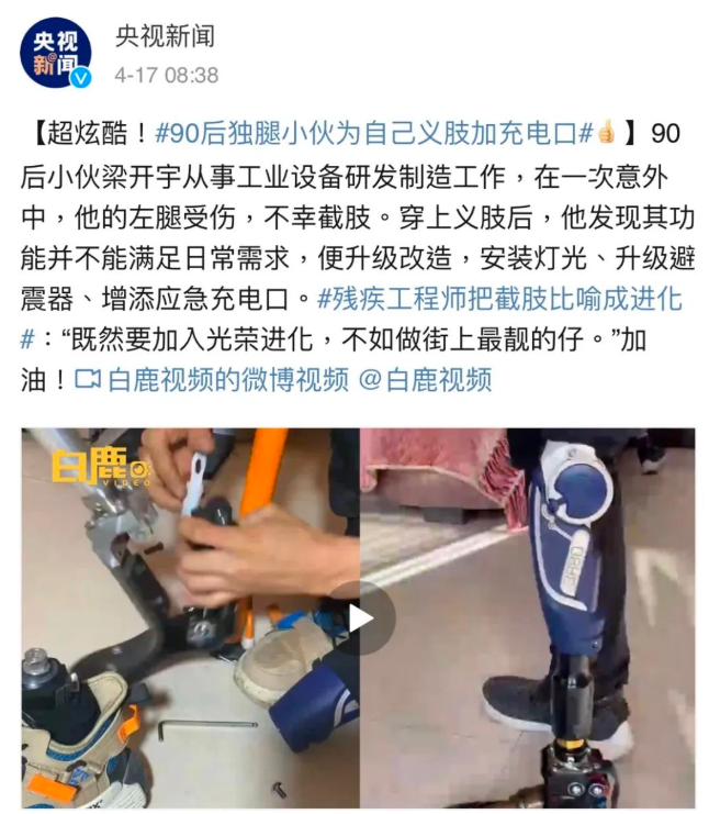他内心的强大和乐观,让他并没有停留在懊恼与悲观的情绪中,而是很快走了出来,并且重新找到了自己的方向——继续钻研义肢改造,让更多有需要的人,用上安全且实惠的义肢。