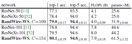 (4)在ImageNet 1000-class任务上验证RandWireNN的表现;