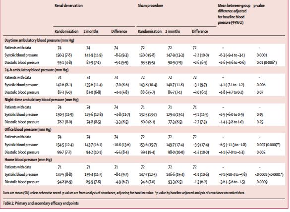最后,这项研究存在一定的局限性,比如只进行了为时两个月的短期随访时间。我们这样做是出于对高血压病人的安全考虑,尽量减少实施“假手术”组的高血压患者停用降压药物的时间。