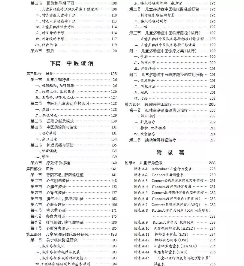 《儿童多动症临床治疗学》第3版是全国中医理论整理研究会组织编写的一部关于儿童多动症临床治疗的专题著述。第3版在内容上做了较大调整和补充。全书分上、下篇和附录篇。上篇:西医基础与临床。主要论述了儿童多动症名称的沿革、病因学和发病机制的研究;儿童神经心理发育评价、儿童心理行为发展问题;临床诊断和鉴别诊断研究、治疗研究、预防和早期干预、预后等。下篇:中医证治。导论部分,概要地介绍了儿童生理特点、中医学对儿童多动症的认识、证候诊断及模式、中医药治则与治法、护理调摄与预防,以及中医药治疗的临床疗效评价标准;证治部分,将儿童多动症分为10个证(证候),分证详论。附录篇:收载了儿童行为量表、儿童多动症科研病历格式、中医证候诊断病历、门诊病历、临床观察病历等内容。末附方剂汇编,以备检索。
