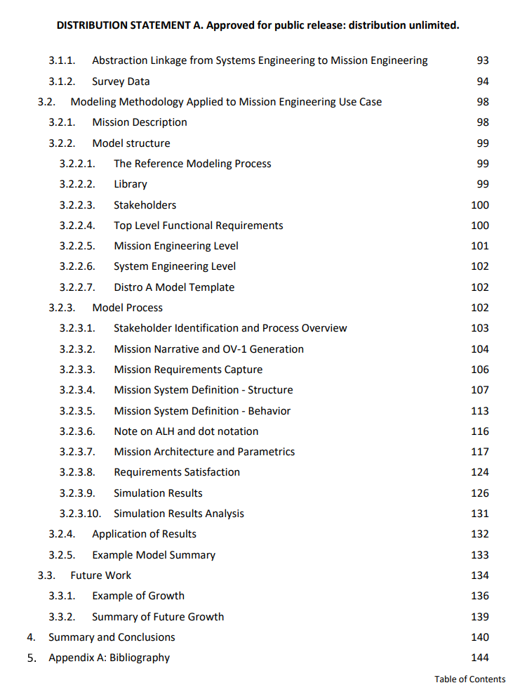 本报告研究了将基于模型的系统工程中的方法学进展和数字流程改进应用于任务工程使用案例的可能性。前提是基于假设:系统工程通过演变为更复杂的系统工程,已经接近于任务工程,在技术上有了联系。如果是真的,那么现在就有可能创建一条数字线,从最初的兵棋推演,通过任务工程指南和联合能力集成与发展系统的过程,变成能够在基于SysML的系统工程模型中消化和建立的需求。这将有助于提高自上而下需求的可追溯性和准确性,并有助于在任务层面进行自下而上的组件贸易研究,作为系统设计和开发的一部分。