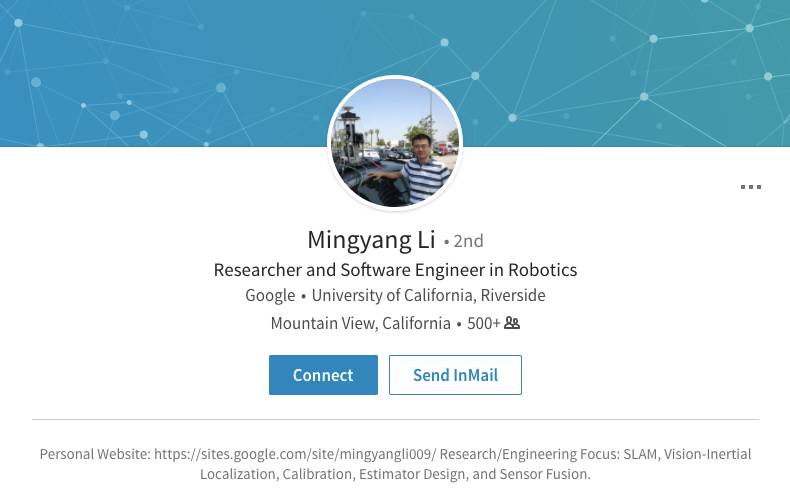 除此之外,李名杨的主要研究领域还包括视觉惯导里程计(VIO),并在 VIO、SLAM 等研究领域中拥有超过 20 篇顶级论文及相关专利。这两项技术在 VR/AR 以及无人驾驶领域均有所应用。我们似乎可以大胆猜测,李名杨的加入或许昭示着阿里的某种野心。