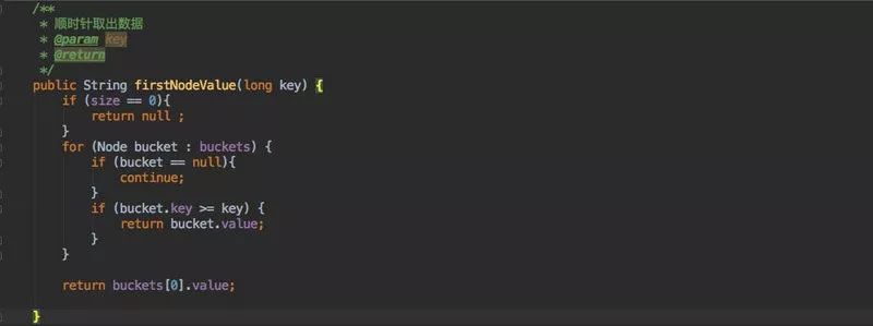 当这个方法有数据返回时取第一个就是顺时针中的第一个节点了。
