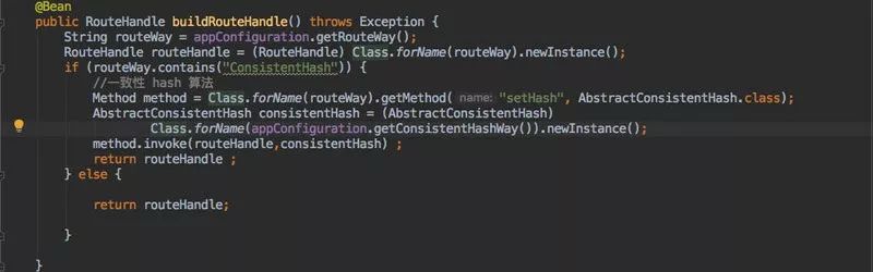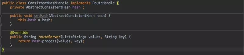 如果想使用一致性 hash 的策略,也只需要配置实现了 RouteHandle 接口的一致性 hash 算法的全限定名。