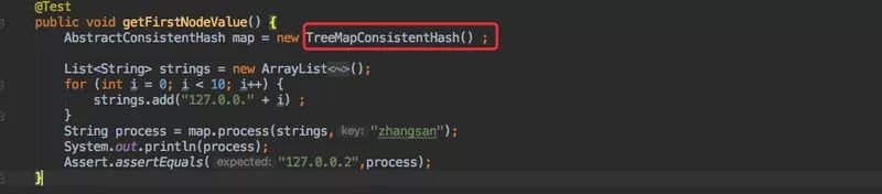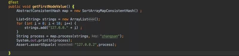 他只需要构建一个服务列表,然后把当前的客户端信息传入 process 方法中即可获得一个一致性 hash 算法的返回。