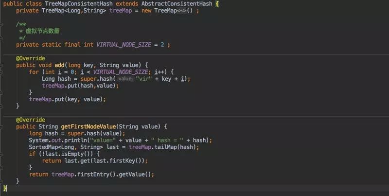 ps:这里同样也没有 hash 方法以及虚拟节点(具体实现请看下文),因为 TreeMap 和 SortArrayMap 一样都是作为基础数据结构来使用的。