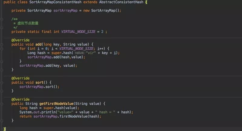下面我们来看看利用 SortArrayMap 以及 AbstractConsistentHash 是如何实现的。