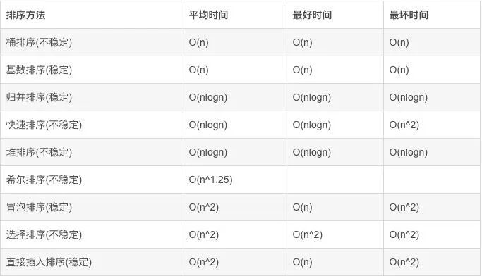 下图是目前主流排序算法的时间复杂度: