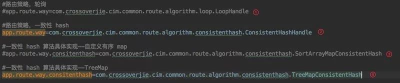 同样的也是需要配置继承了 AbstractConsistentHash 的全限定名。