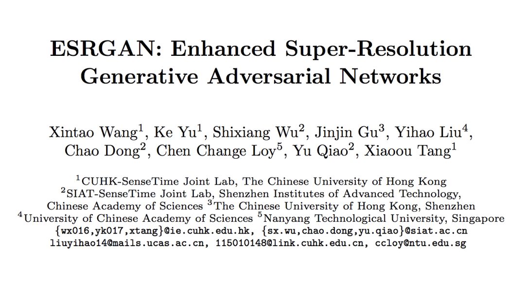 ESRGAN: Enhanced Super-Resolution Generative Adversarial Networks 发表于 ECCV 2018 的 Workshops,作者在 SRGAN 的基础上进行了改进,包括改进网络的结构、判决器的判决形式,以及更换了一个用于计算感知域损失的预训练网络。