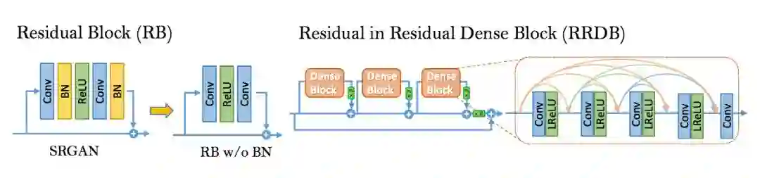 1. 网络的基本单元从基本的残差单元变为 Residual-in-Residual Dense Block (RRDB);