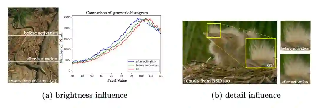 ▲ 使用激活前与激活后的特征的比较:a. 亮度 b. 细节