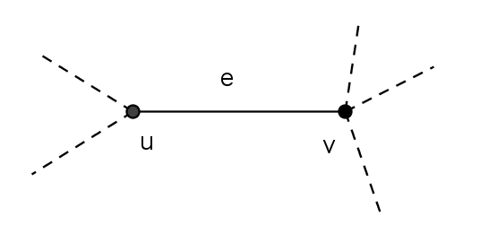 关联边是连接两顶点的边,也就是说{U, V}的关联边是e。