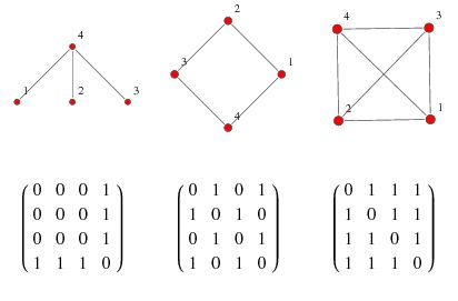 对于上面的图,可以用下面的矩阵表示,横排表示一个节点,竖列表示连接的节点值。