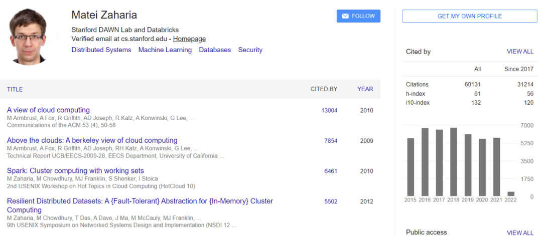 Matei Zaharia,斯坦福大学计算机科学学院助理教授,数据和人工智能平台初创公司 Databricks 联合创始人兼首席技术专家。他对用于新兴大规模工作负载的计算机系统感兴趣,如机器学习、大数据分析和云计算,因对大型计算机系统的研究而获得加州大学伯克利分校的计算机科学博士学位和 ACM 博士学位论文奖。