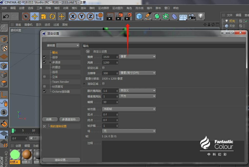 进行【渲染】,鼠标点击【编辑渲染设置】进行渲染调整,将将宽度设置为1920高度设置为1200分辨率设置为300。如图28所示: