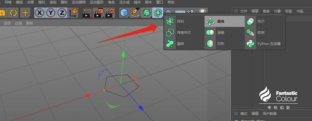 然后选择【阵列】工具中的【晶格】工具。如图6、图7所示: