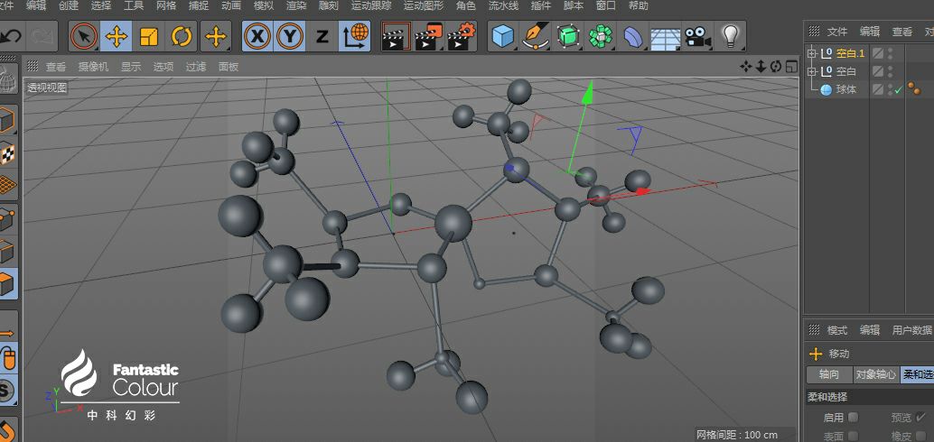 建立半径为10cm的【球体】通过移动方向添加到每一个节点处。如图18、图19所示: