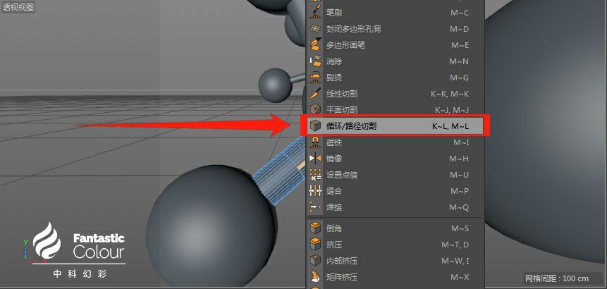 添加【材质】并且将物体分段渲染,选择圆柱鼠标点击右键选择【循环/路径切割】选取圆柱的中点对圆柱进行切割分段。如图21所示: