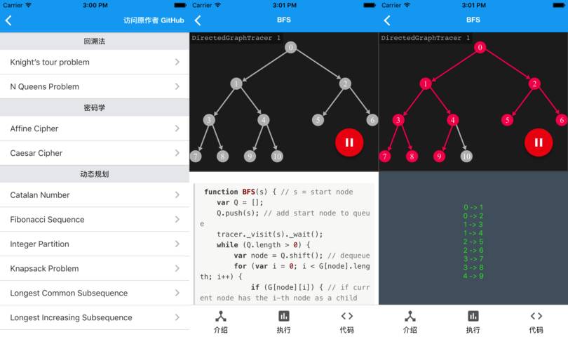 既然,我们已经有了那么多算法题,那么我们也应该在手机上学习。于是,Growth 的用户 @ ivanberry 便提出了可以参考:https://visualgo.net/en,可是这个是不开源的。