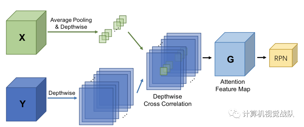 没有support,RPN就没有目标,后面的子分类就搞不清楚这么多的不相关目标。使用support信息就能过滤掉大部分的背景框,还有那些不是匹配的类别。通过在RPN中用attention机制来引入support信息,来对其他类的proposal进行压制。通过逐深度的方法计算二者特征值的相似性,相似性用来生成proposal。相似度定义如下: