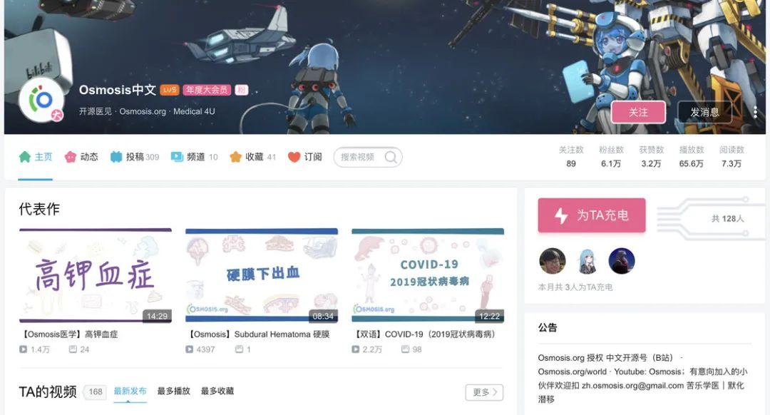 值得一提的是,B 站上的 Osmosis 并非官方团队运营的账号,而是由官方正式授权搬运的中文频道(频道下有发布中英双语的授权信),视频会与 YouTube 保持同步。
